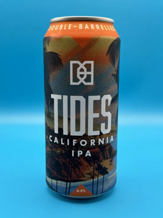 Tides California IPA rolls in with classic West Coast energy. It?s super pale and brilliantly bright, riding a refreshing wave of citrus, pine and dank resin. Centennial, Cascade & Columbus give a firm bitterness up front, with a dry hop of Columbus Cryo and Simcoe bringing an unmistakable dank, piney and citrusy punch to this crisp IPA